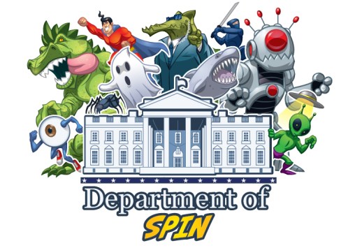 Department of Spin is a social card game in which your creativity, persuasiveness, and spontaneity will shine. You won’t just play cards–you’ll argue your positions, tell stories, and invent facts to support your case. Most of all, you and your friends will laugh until your face hurts. Here’s how to play: